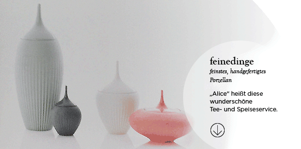 "Alice" heißt das wunderschöne Tee- und Speiseservice der österreichischen Designerin, das Stück für Stück handgefertigt wird. Jedes Teil ist ein Unikat und verzaubert durch seine starke, eigenständige Austrahlung sowie das hochwertige Porzellan in wunderschönen Farben Umgebung und Betrachter.